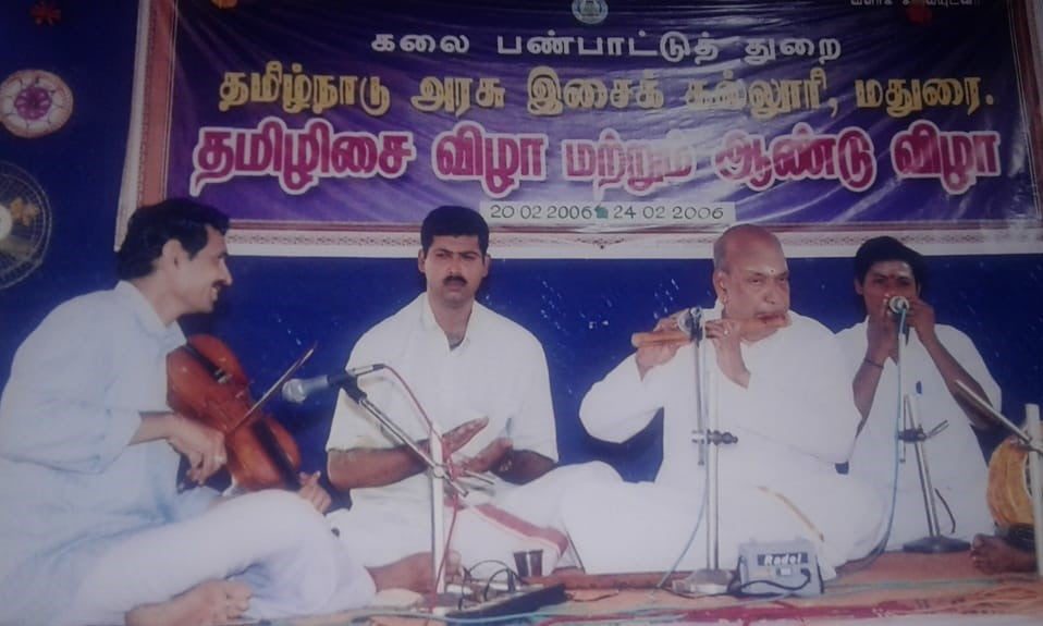 Shri Dr. R.Govindarajan was trained in vocal and violin by legendary musicians like Sangeetha kala acharya, Dr.Trichy J Venkataraman and Shri.N.Amirtha Bharathi respectively. Driven by the passion for music and a thirst to master every intricacy of the art, he pursued his Post Graduate and a PhD in music. He was awarded with a Doctorate degree in music by Madurai Kamaraj University on 9th Dec 2014. Dr. Govindarajan is known for his unique style of playing the instrument with elaborate Raga Aalaps and Kalpana Swaras with a great control over the laya. He has been performing vocal and violin concerts for the past 30 years all over the world. He has shared the stage with legendary musicians like Sangeetha Kalanidhi Shri.T.N.Seshagopalan, Padmashri Dr. N Ramani and Shrimathi T. Vedavalli. He is currently working as an Assistant Professor in Government Music College, Tamil Nadu. He is an ‘Asthana Vidhwan’ of Sri Kanchi Kamakoti Peetam.