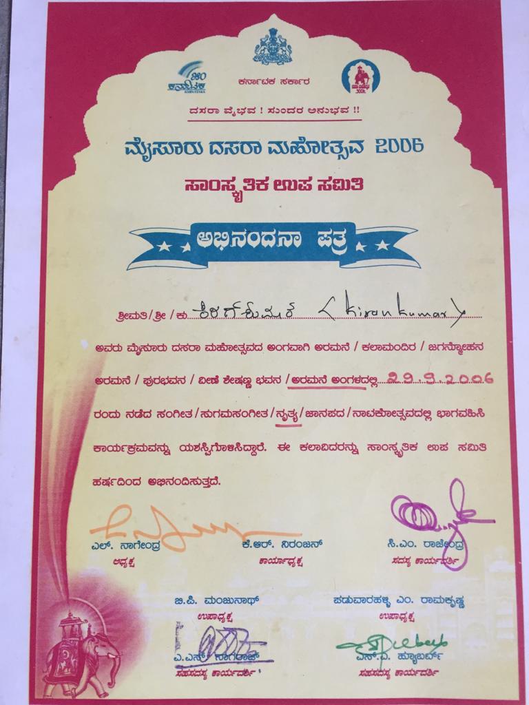 R.P.Kiran kumar started his initial training in Mridangam from the young age of 11 from Vid B.Siva sankar reddy. After 2004 Acknowledge as one of the most top most percussionists Shri.Arani vasudeva rao Raghu prasad ( A.V.Raghu Prasad ) is a direct disciple of Mirudhanga chakkaravarthi Shri. Palani subramania pillai